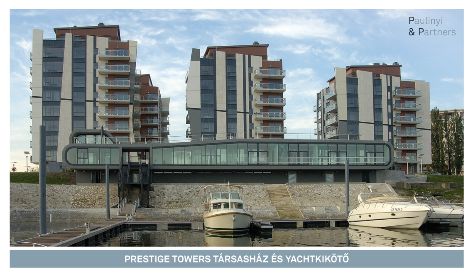 A Prestige Towers társasház és yachtkikötő olyan fejlesztés, amely a vízparti életformát nem elszigetelt kiváltságként, hanem tudatosan tervezett városi minőségként értelmezte már megvalósulásakor is. A Duna identitásképző tényező, nem csupán esztétikai elem.