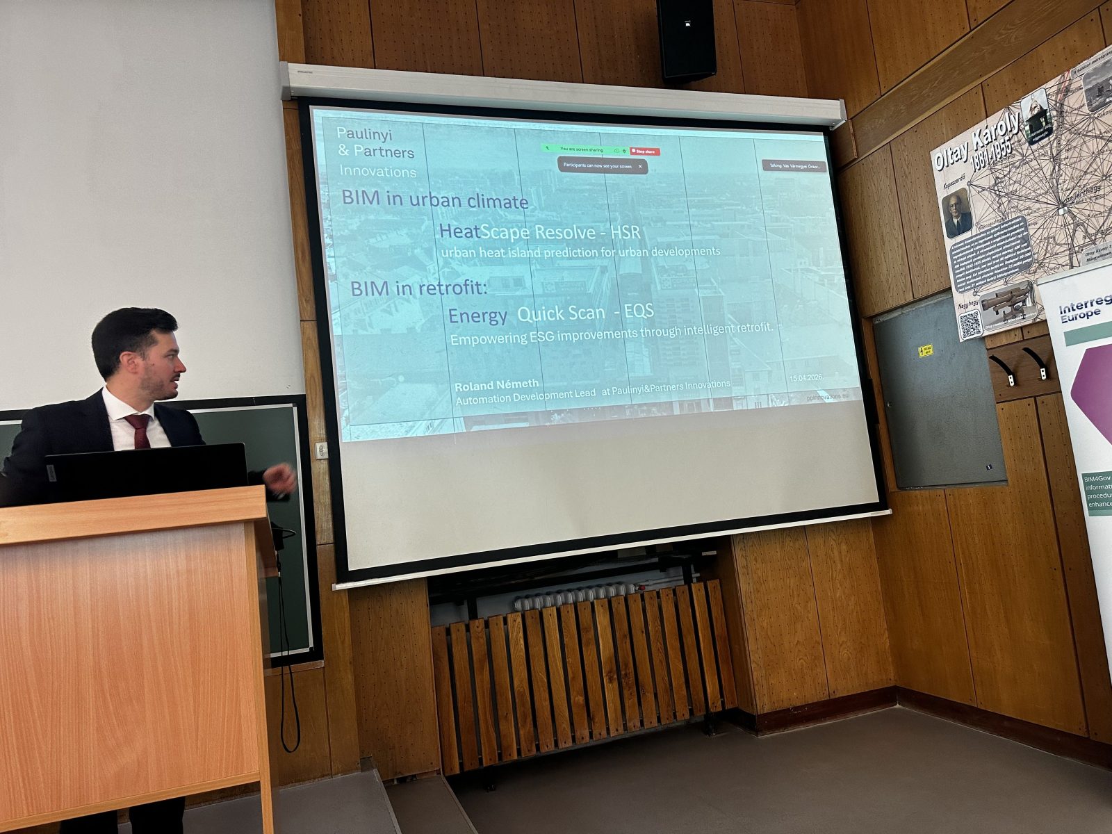 2026. április 15-én a Budapesti Műszaki és Gazdaságtudományi Egyetemen zajlott a nemzetközi BIM4GOV Interreg Europe program konferenciája, amelyen Németh Roland, a Paulinyi & Partners Innovations automatizációs fejlesztési vezetője képviselte cégcsoportunkat. Az európai szakmai közönség előtt tartott előadás a BIM magánszektori alkalmazásait bemutató szekció részeként hangzott el, neves hazai és nemzetközi előadók társaságában.